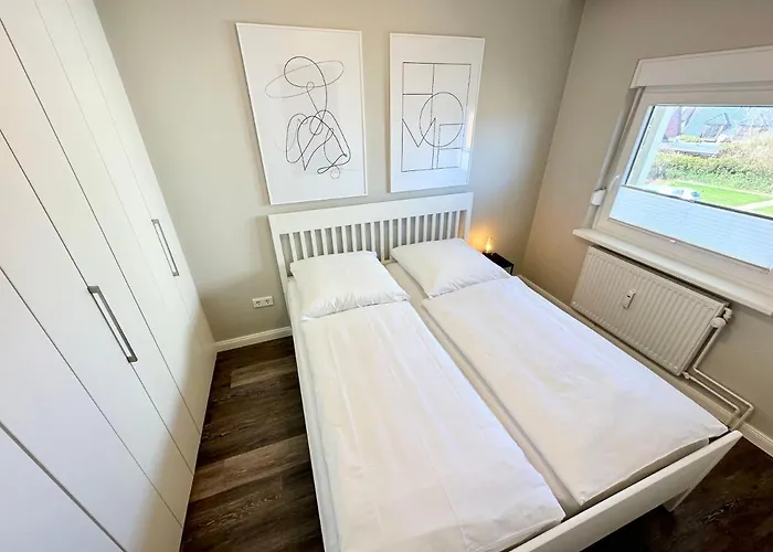 Appartement-3-A24 韦斯特兰设有小厨房和配阳台,咖啡机/煮茶器 和高速上网的客房. 从公寓出发很容易抵达St.Christophorus,仅有1.1公里距离.住所距离叙尔特岛机场有不到10分钟的车程.